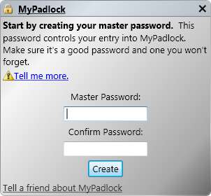 Start by creating the last password you'll ever have to memorize. MyPadlock
